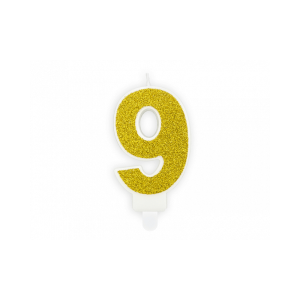 Rođendanska svijeća zlatna glitter broj 9